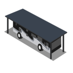 A 12x40 covered parking space is designed to protect larger vehicles up to 40 feet long, such as RVs, boats, or trailers, from sun, rain, and snow. The overhead cover provides added weather protection while keeping the vehicle easily accessible. One outlet for a trickle charge is provided.